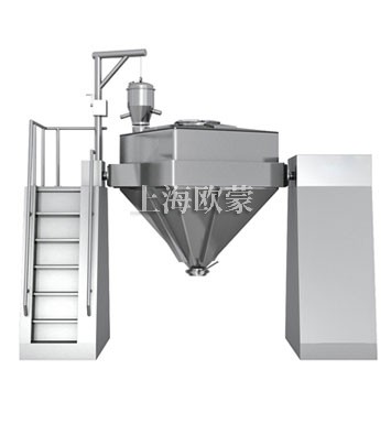 將物料裝入方錐形密閉混合桶內(nèi),料斗對稱的軸線與回轉(zhuǎn)軸軸線成一夾角,不同組分物料在密閉的料斗中進(jìn)行三維空間運(yùn)動(dòng),產(chǎn)生強(qiáng)烈翻轉(zhuǎn)和擴(kuò)散收縮作用,達(dá)到較佳的混合效果。